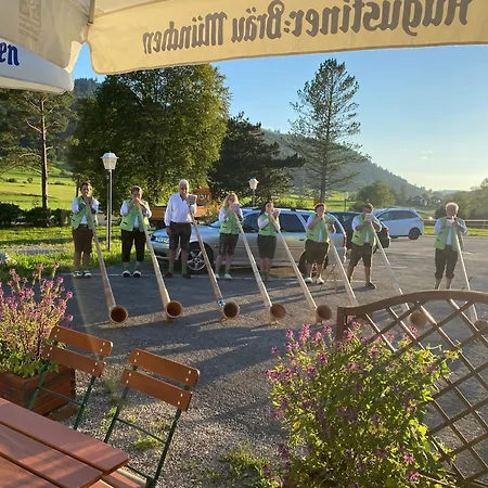 Es gibt ein À-la-carte- Restaurant vor Ort, in dem einheimische Gerichte serviert werden. Zu den Speisemöglichkeiten gehört auch Musikalm Festhalle Steibis in nur 12 Gehminuten Entfernung vom Hotel.